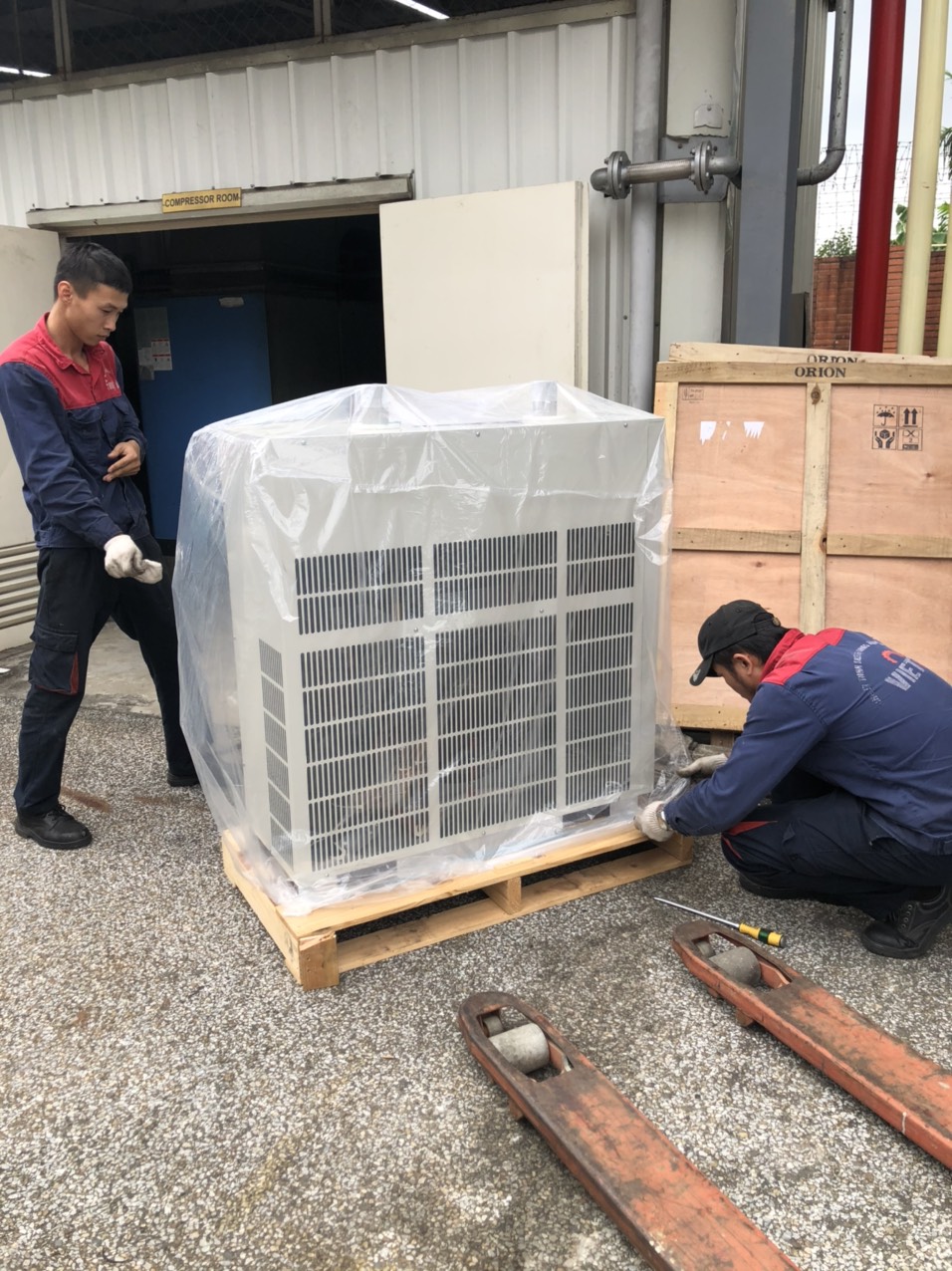 – Dòng máy làm lạnh có một số bộ phận quan trọng như máy nén ga lạnh, dàn trao đổi khí nén với gas, bộ phận đường khí nén đi vào, quạt làm mát, hệ thống xả tự động, bộ điều khiển áp suất.
